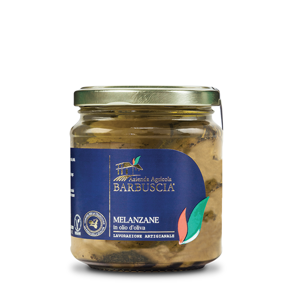 Ingredienti: melanzane 64%, olio d'oliva 34%, basilico, menta, aglio, pepe nero, sale, aceto.