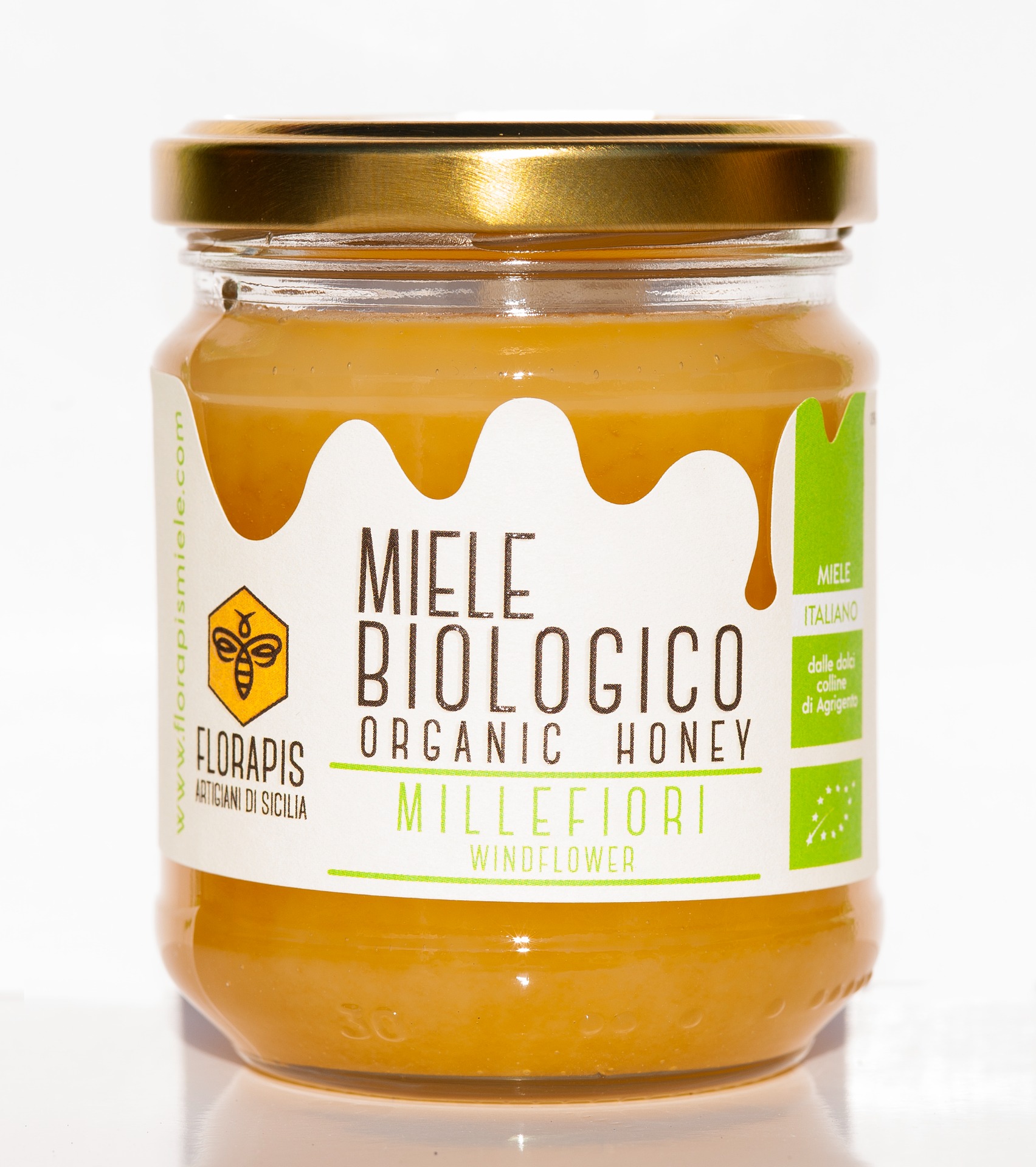 Miele biologico prodotto in Sicilia: aromatico, balsamico, intenso di vari gusti: millefiori, fior di timo, fior di limone, fior d'arancio, fico d'india, melata, castagno.